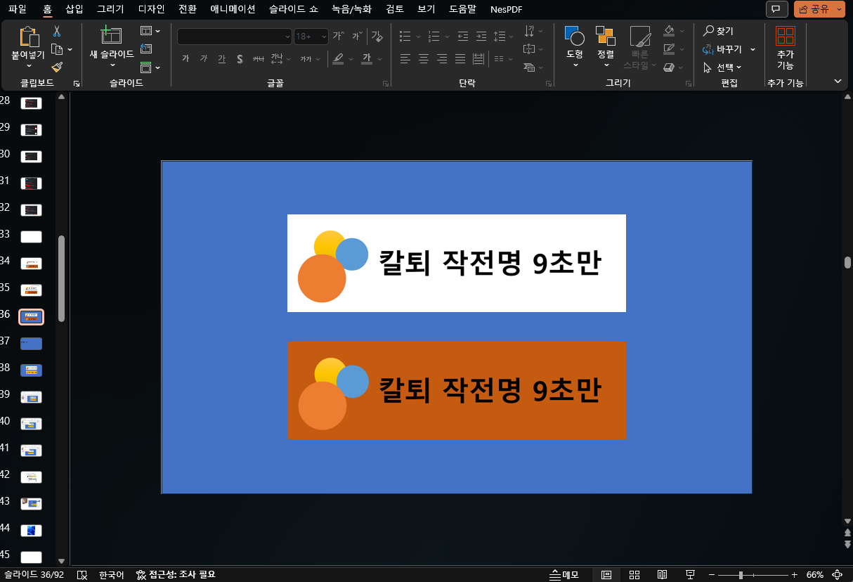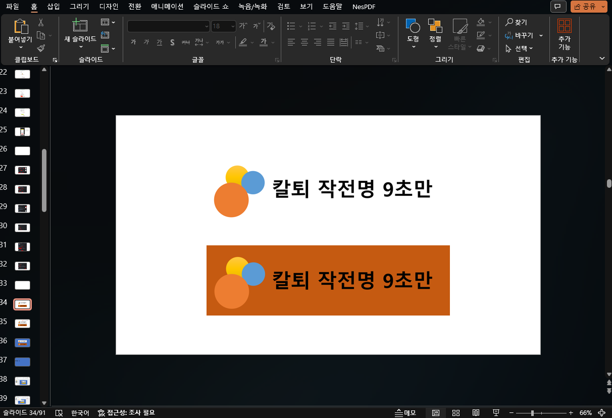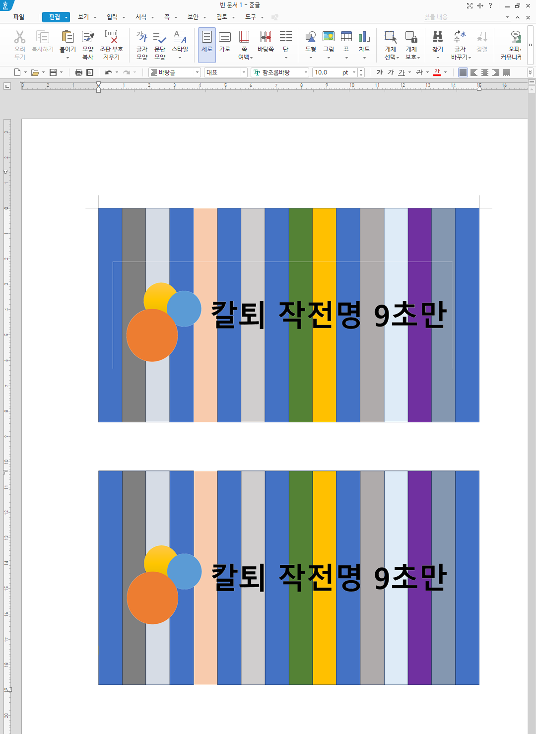 다양한 배경 색깔을 적용해 봤습니다. PPT 화면에서 전체를 드래그해서 한글에 붙여 넣어보겠습니다.