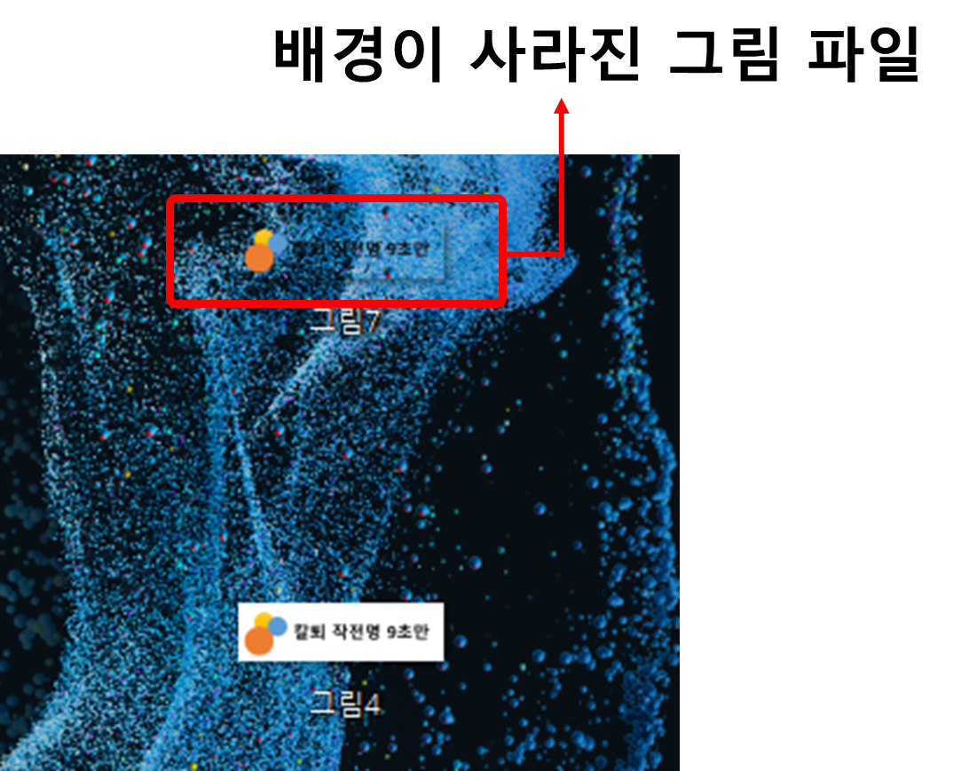 그럼 아래처럼 배경이 사라진 그림 파일을 확인하실 수 있습니다. 그 밑에 그림은 흰색 배경이 있던 그림입니다.