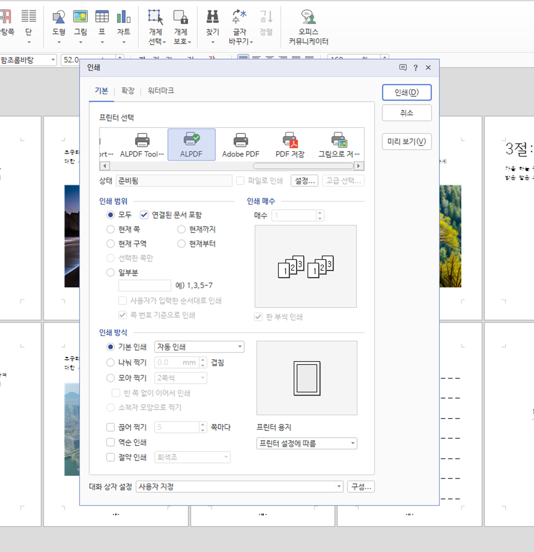 지금이 정말 중요합니다. 왜냐면 나무를 아껴야 하니까요. 잘못 인쇄하면 종이낭비로 이어지니 신중하셔야 합니다.