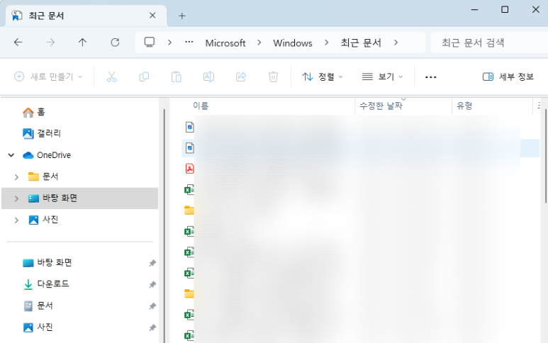 아래 경로로 가시면 전에 작업했던 한글, 워드, 엑셀, PDF, PNG 등 모든 작업했던 파일들뿐만 아니라 작업했던 폴더들도 보여줍니다.