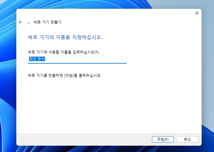 3. 바로 가기에 사용할 이름 입력하고 다음 누르기