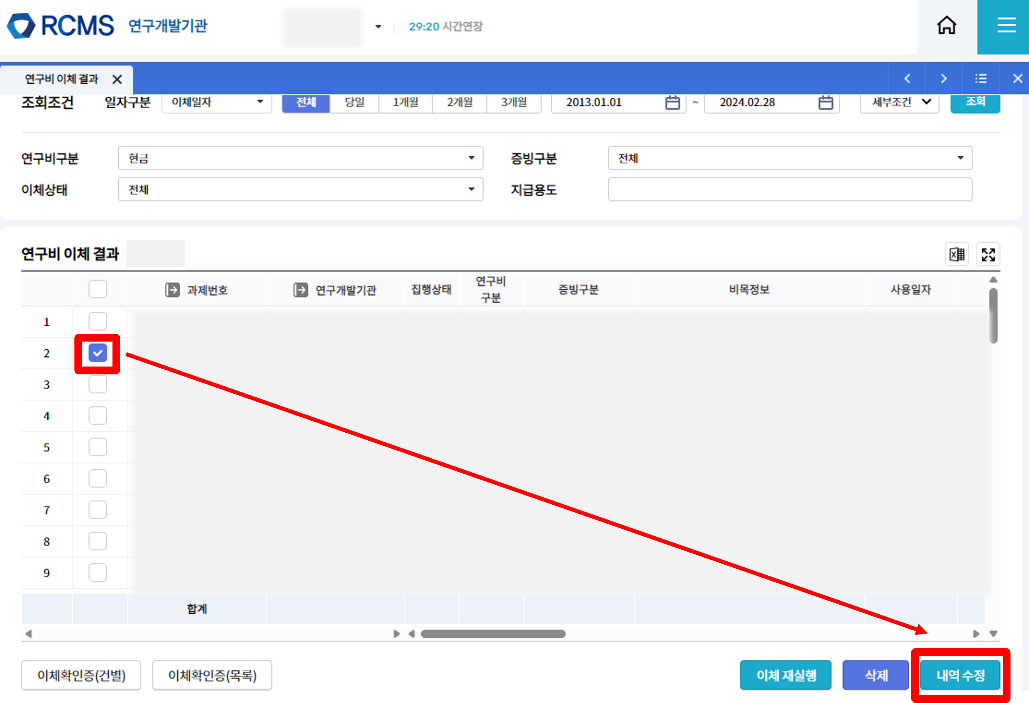 자 그럼 RCMS에서 내역을 수정하는 절차를 안내해 드릴게요.
