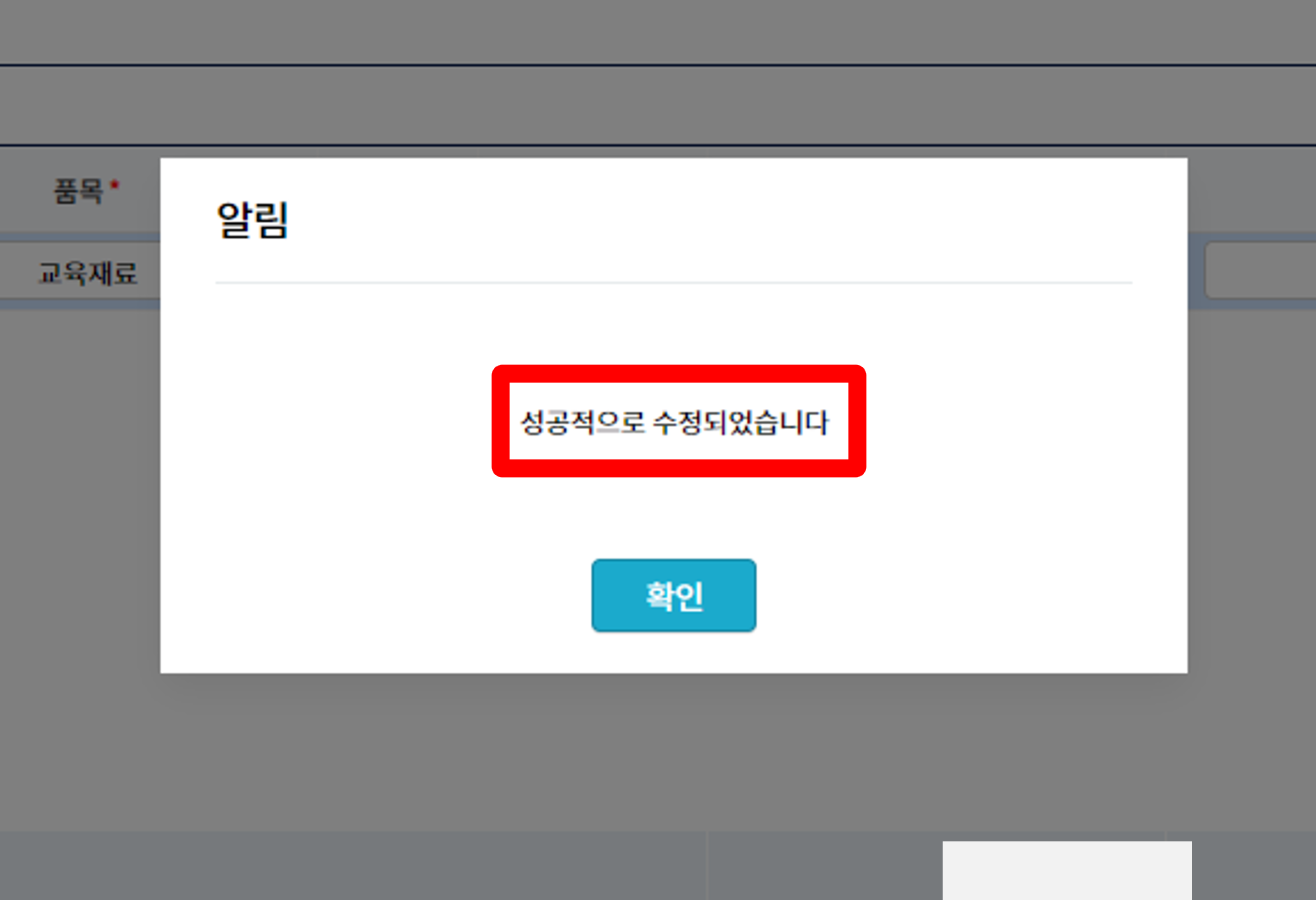 모두 마무리 지으시면 "아래처럼 성공적으로 수정되었습니다"라는 메시지가 나옵니다.