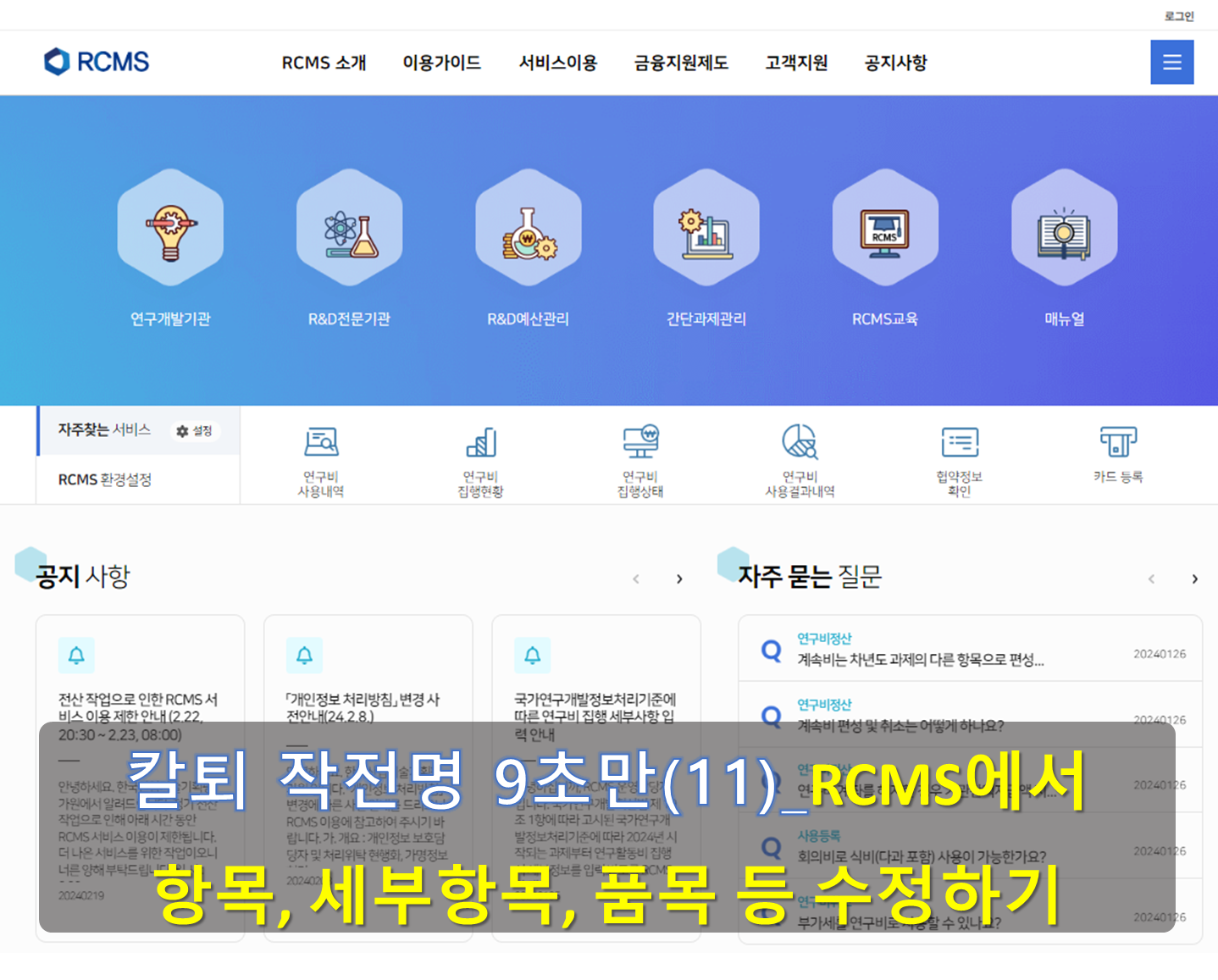 안녕하세요! 오늘은 RCMS에서 항목, 세부항목, 품목 등을 수정하는 방법을 알아보려고 하는데요,