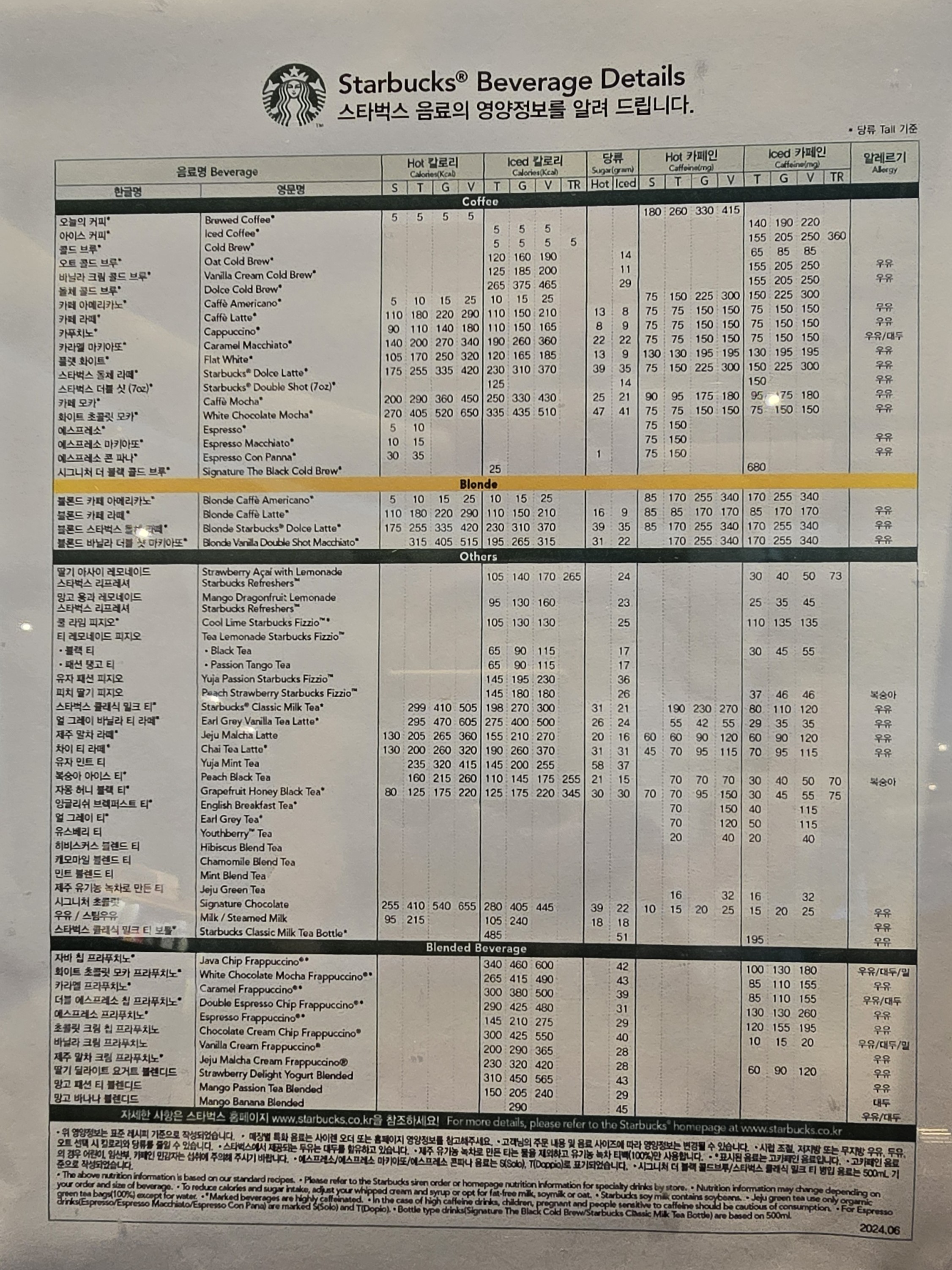 안녕하세요! 오늘은 스타벅스 음료에 관한 영양정보를 살펴보려고 해요.