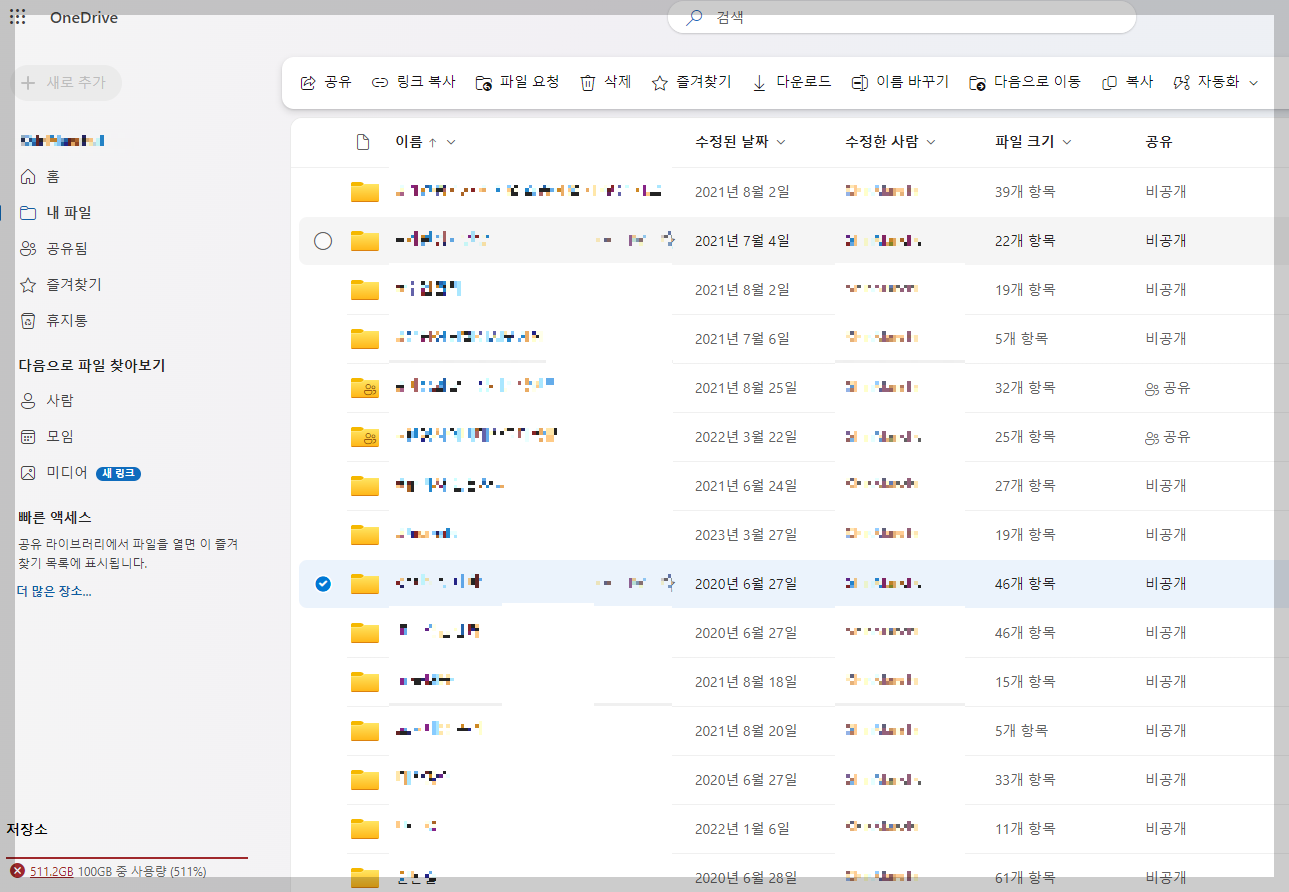 511.2기가를 쓰고 있으니 511%라고 사용량이 표시되네요.