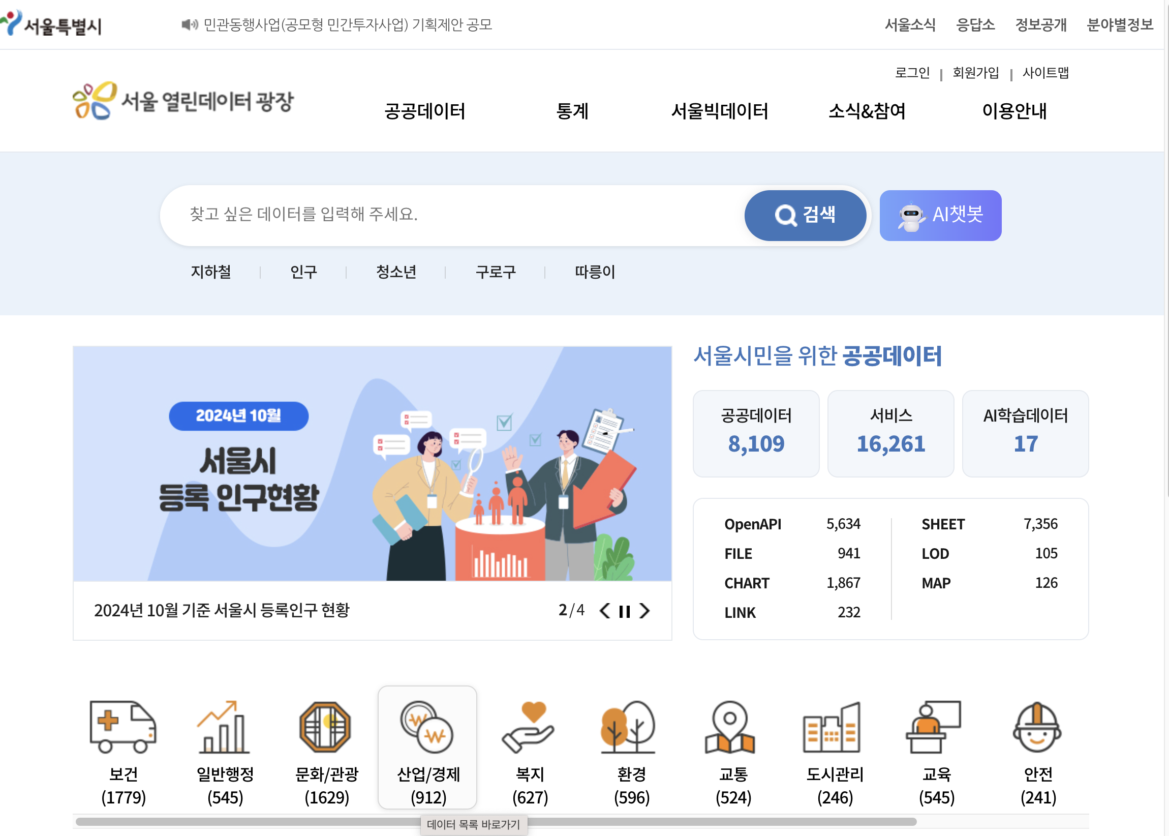 안녕하세요. 오늘은 우리나라 주요 공공데이터 서비스 플랫폼에 관해 살펴보려고 해요.