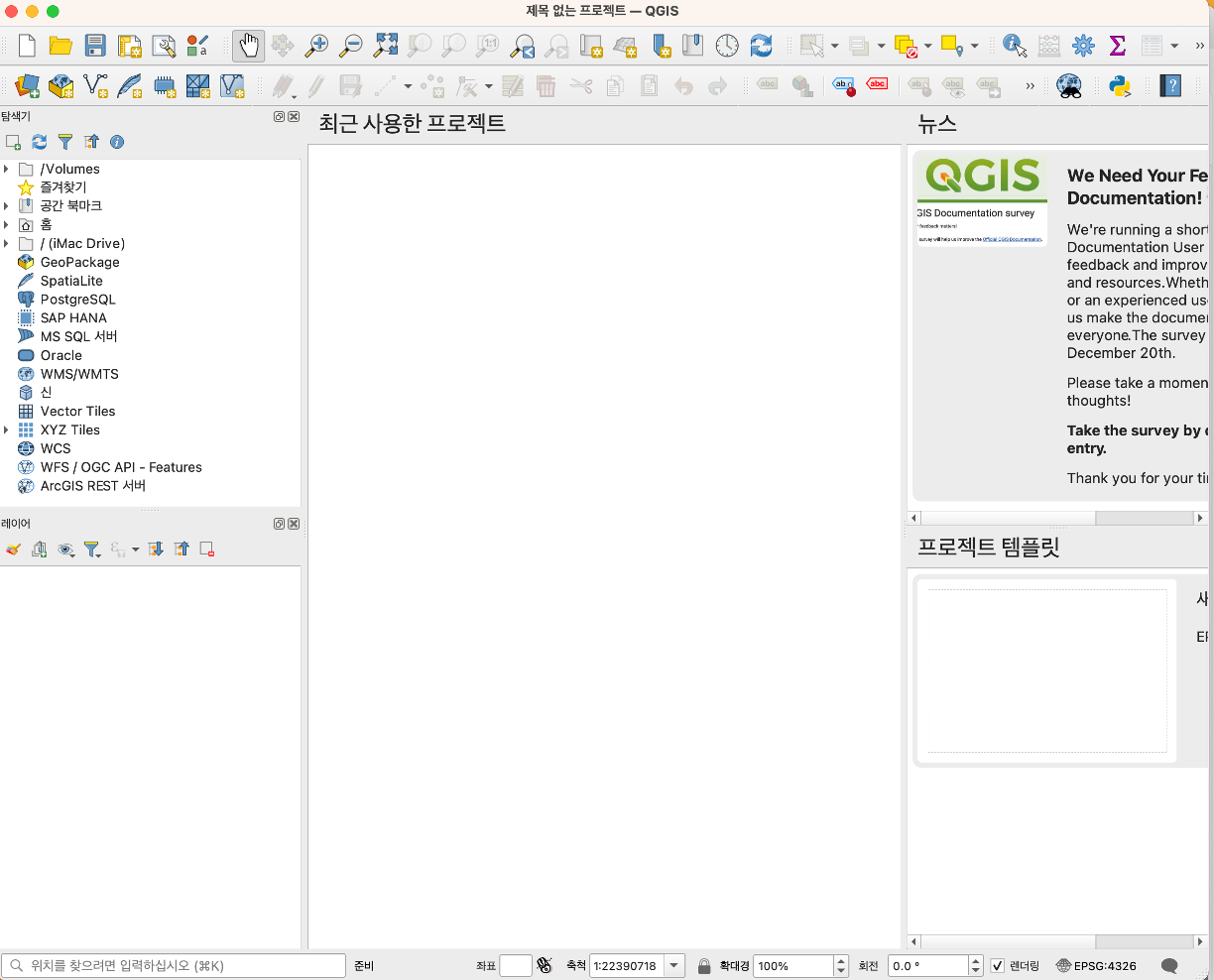 QGIS를 실행한 화면입니다.