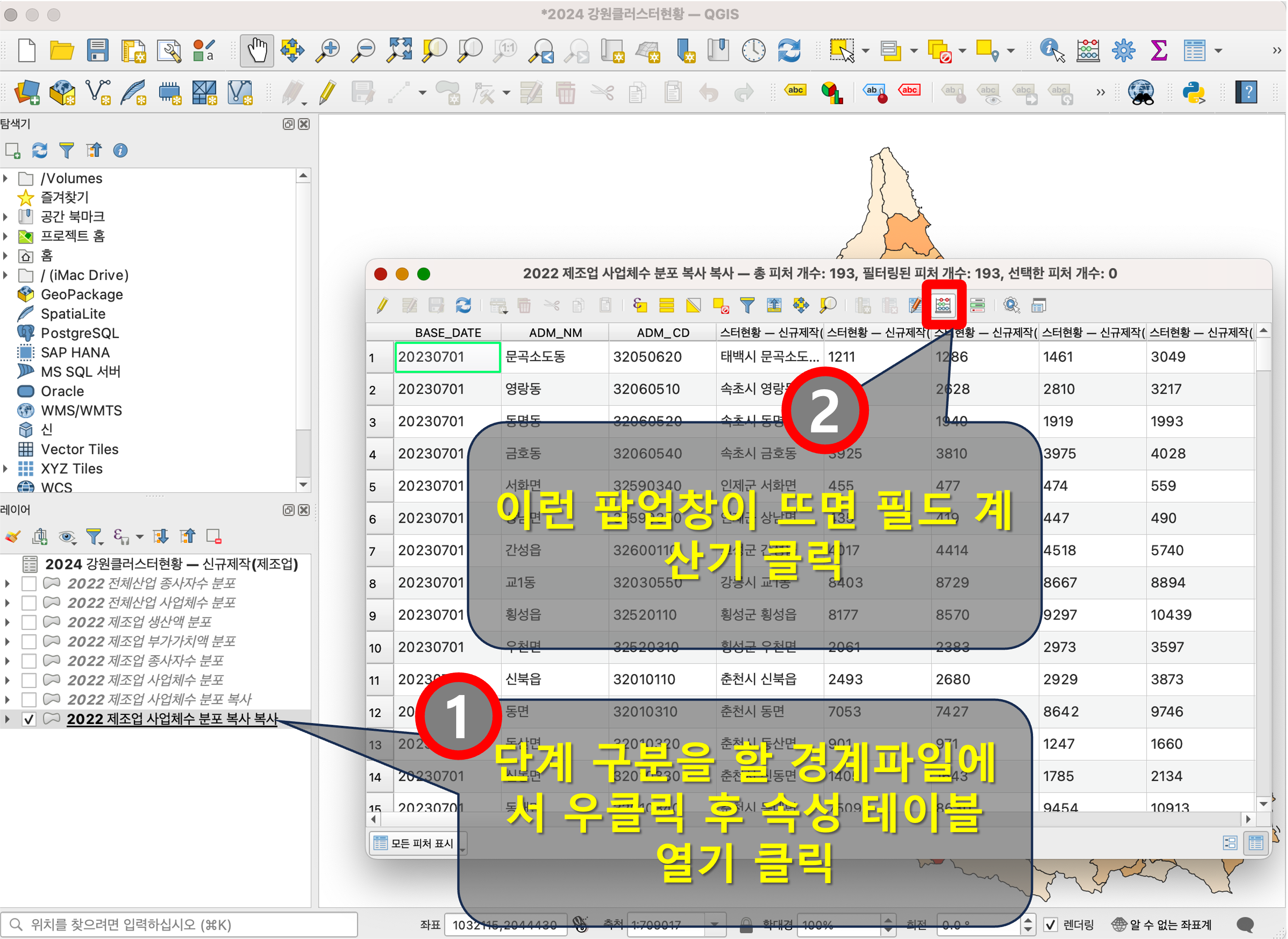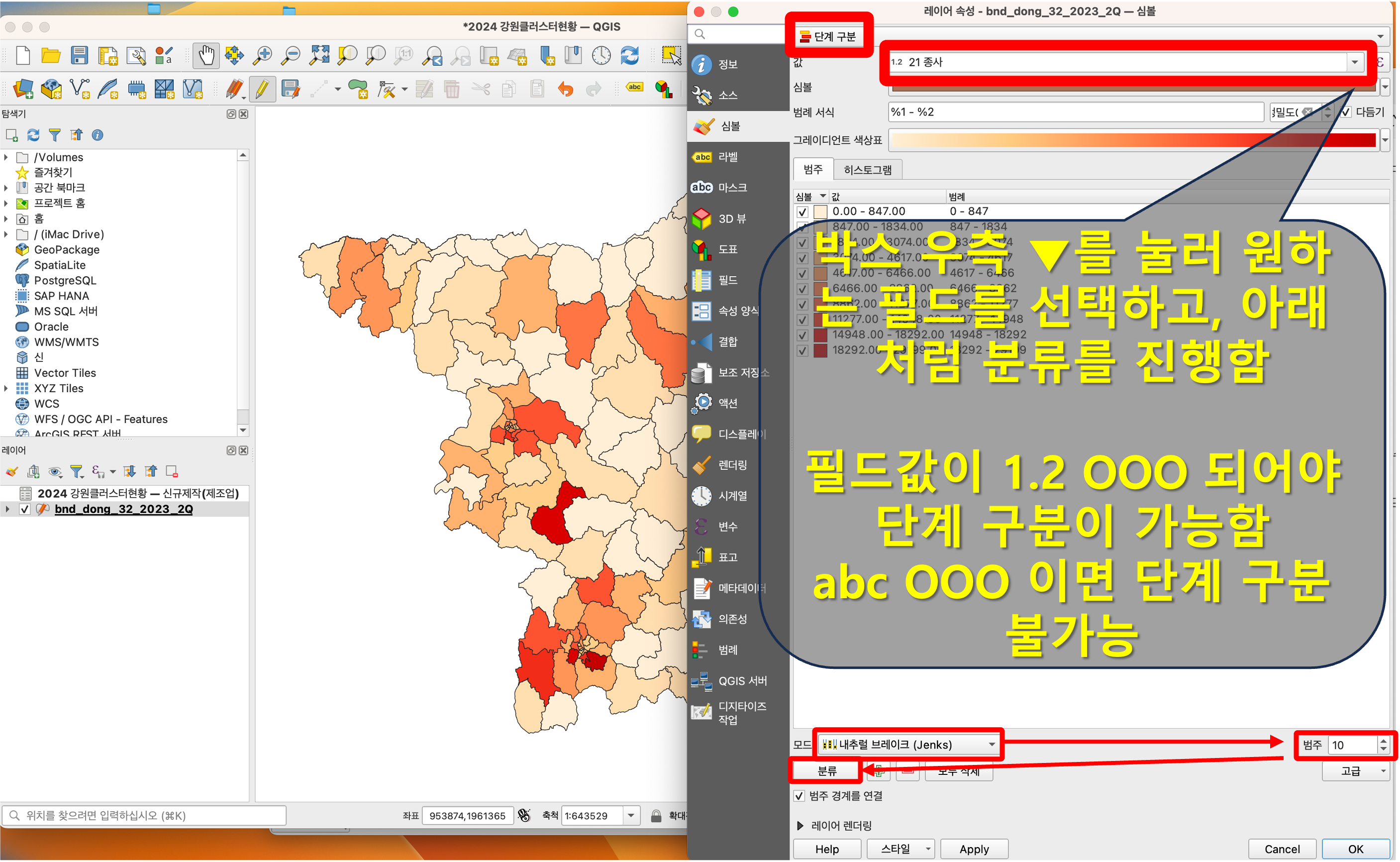 안녕하세요. 오늘은 지도상에 단계구분을 위해 필드계산기를 사용하는 방법에 관해 알아보도록 하겠습니다.