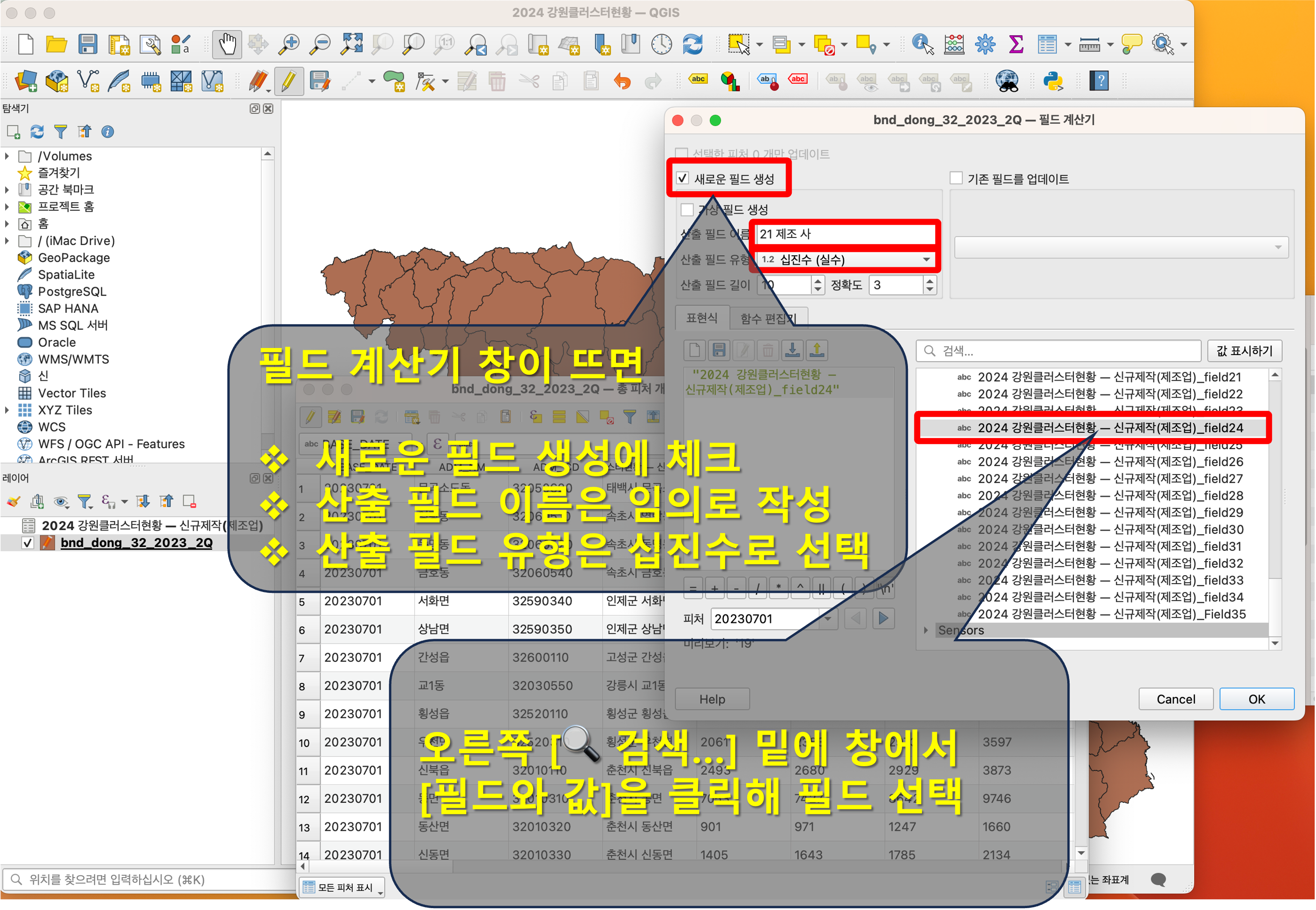 2) 산출 필드 이름을 임의로 작성합니다. 본인이 보기 편한 것으로 하면 됩니다.