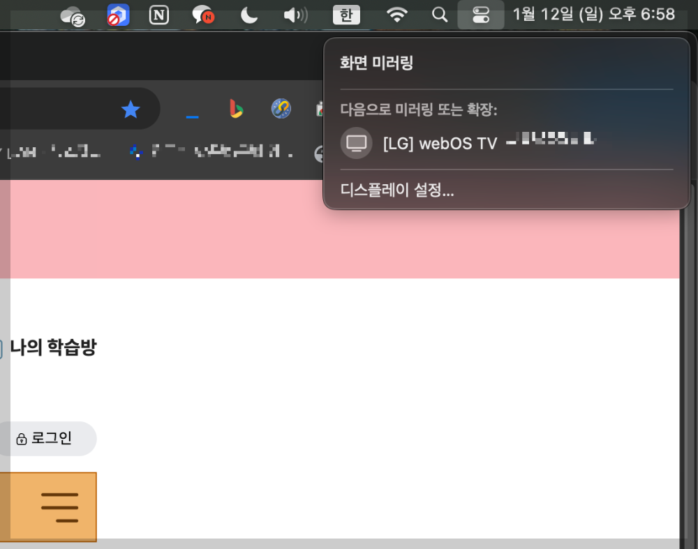 스마트TV 설정이 끝나면 본격적으로 아이맥에서 미러링을 진행합니다.
