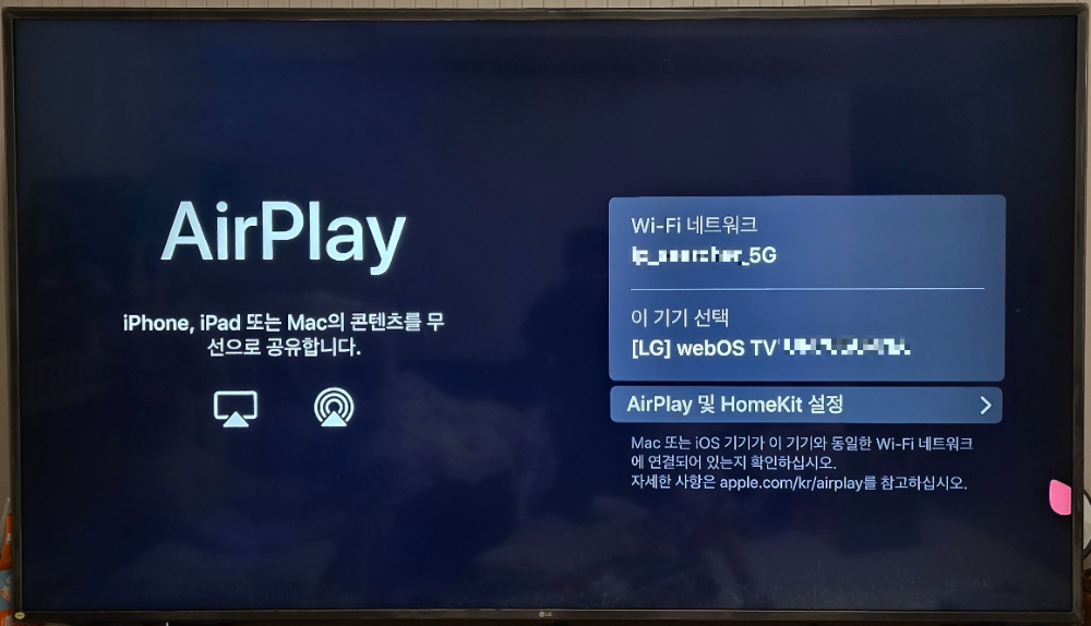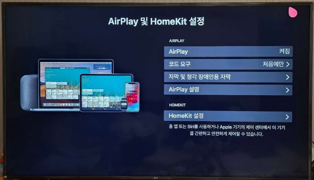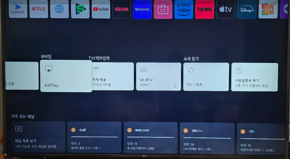 스마트 TV 메뉴에서 AirPlay를 찾아 들어갑니다.