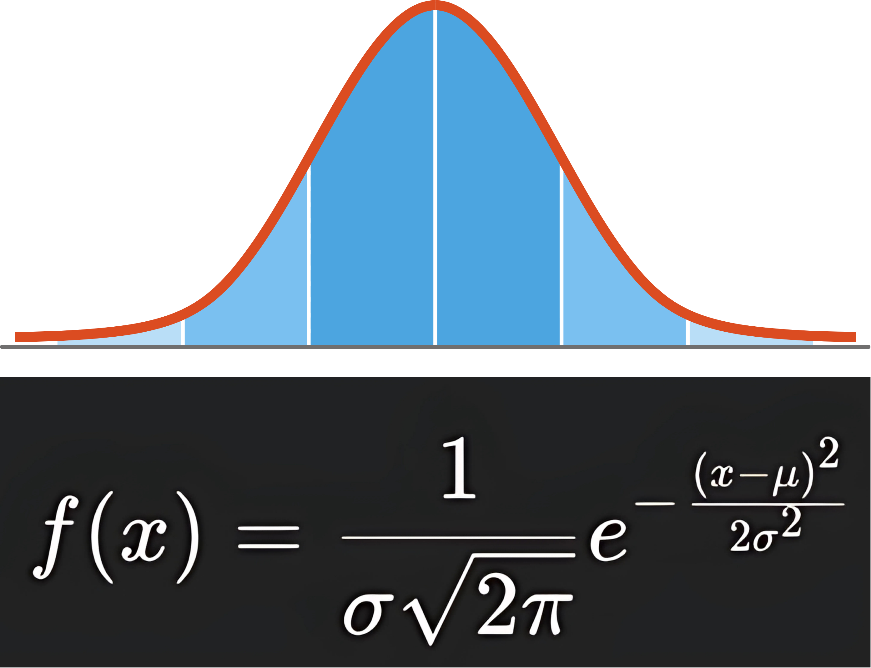 퍼센트는 이 정규분포 함수의 적분에 의해 계산됩니다. 예를 들어, 평균 ± 1 표준편차 구간 안에 데이터가 얼마나 분포하는지를 계산하려면, 확률밀도 함수를 평균에서 1 표준편차 범위 내에서 적분하면 그 결과가 0.68, 즉 68%가 나옵니다. 마찬가지로, 평균 ± 2 표준편차에서는 95%, 평균 ± 3 표준편차에서는 99.7%의 데이터가 존재함을 알 수 있습니다.