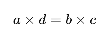 비례식에서 내항의 곱과 외항의 곱이 같다는 성질을 가지고 있습니다. 이를 내항의 곱 = 외항의 곱이라고 합니다: