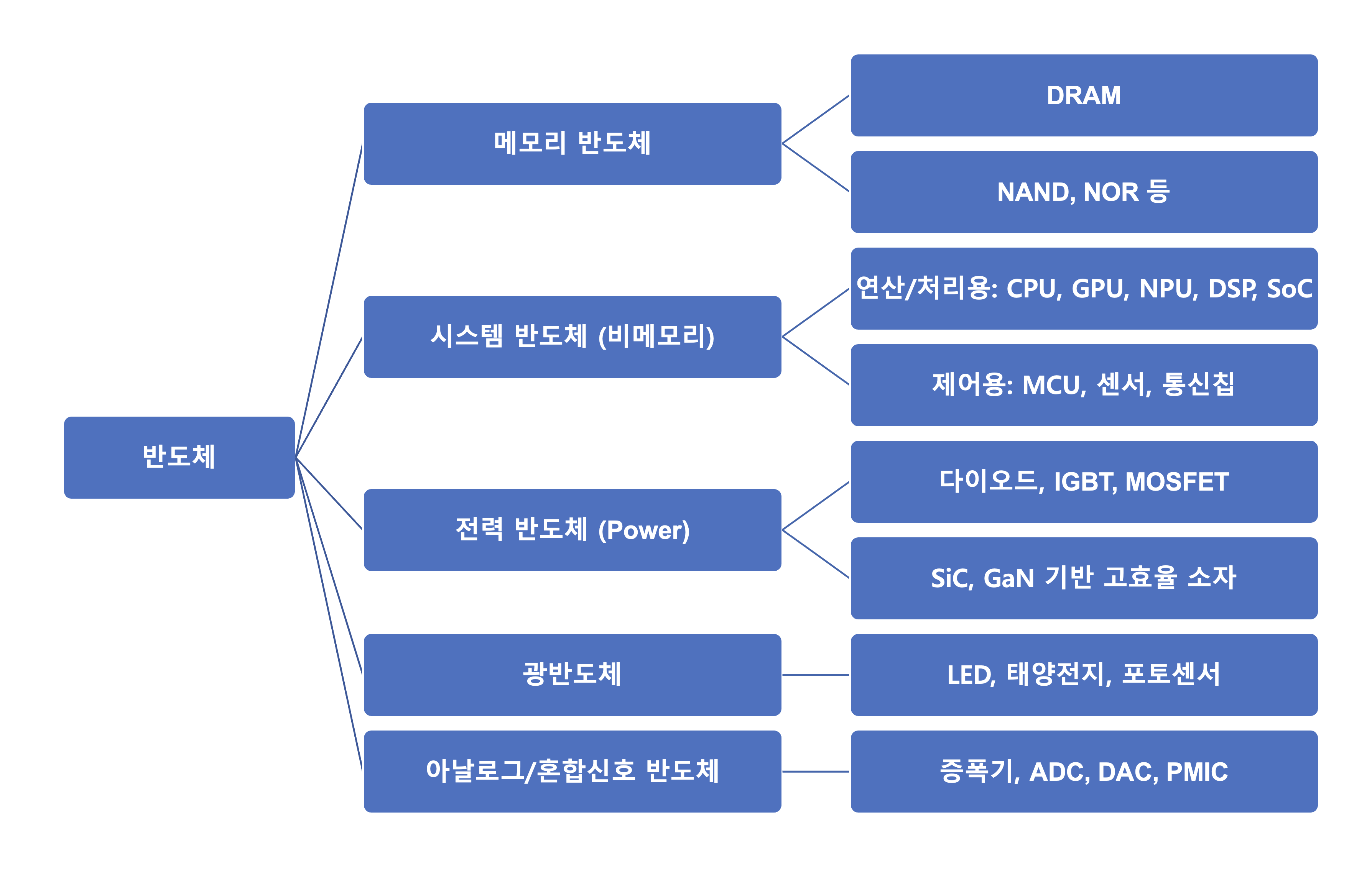 ※ 넓게 보면 시스템 반도체에 포함되지만, 기술 특성과 응용 분야가 독립적이기 때문에 따로 분류함