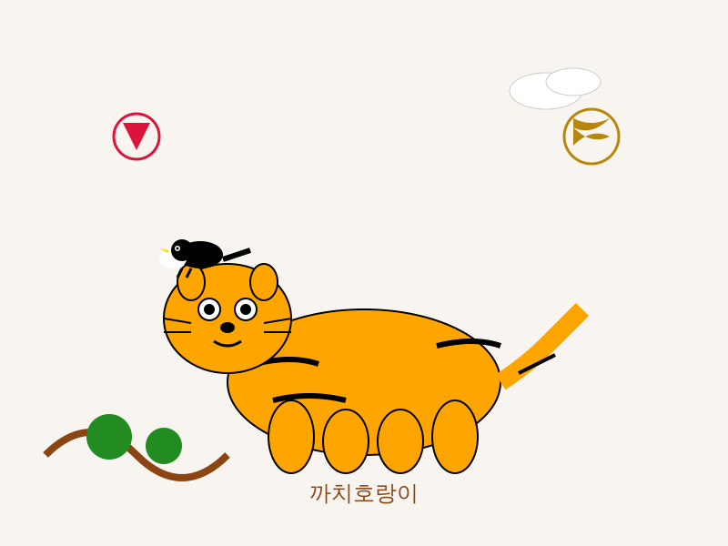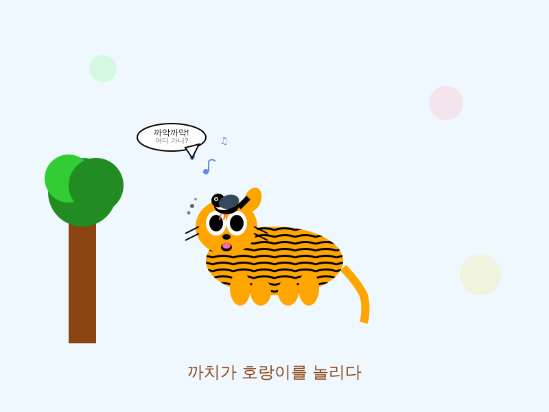 민담에 따르면, 호랑이는 까치의 지저귐을 매우 싫어한다고 해요. 까치가 "까악까악" 울면: