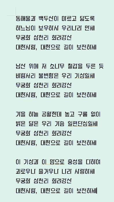 애국가를 강원특별자치도체로 바꿔보겠습니다.