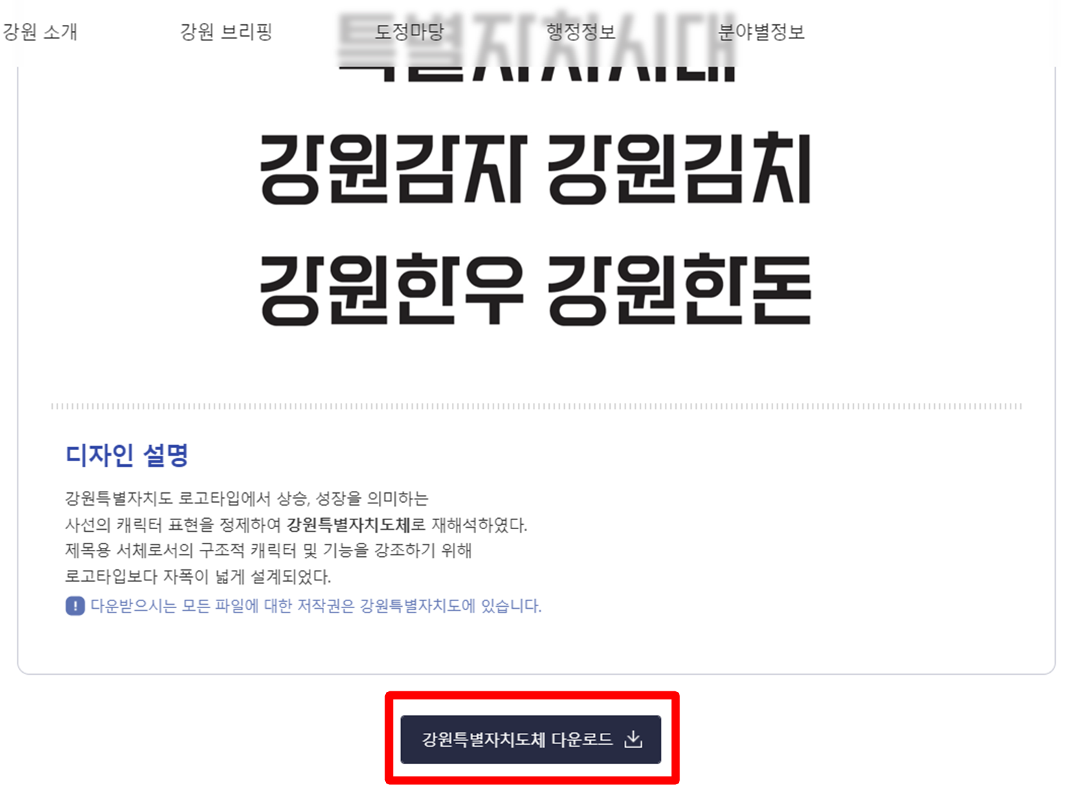 아래와 같이 강원특별자치도체가 사용된 다양한 문구들을 확인하실 수 있어요.