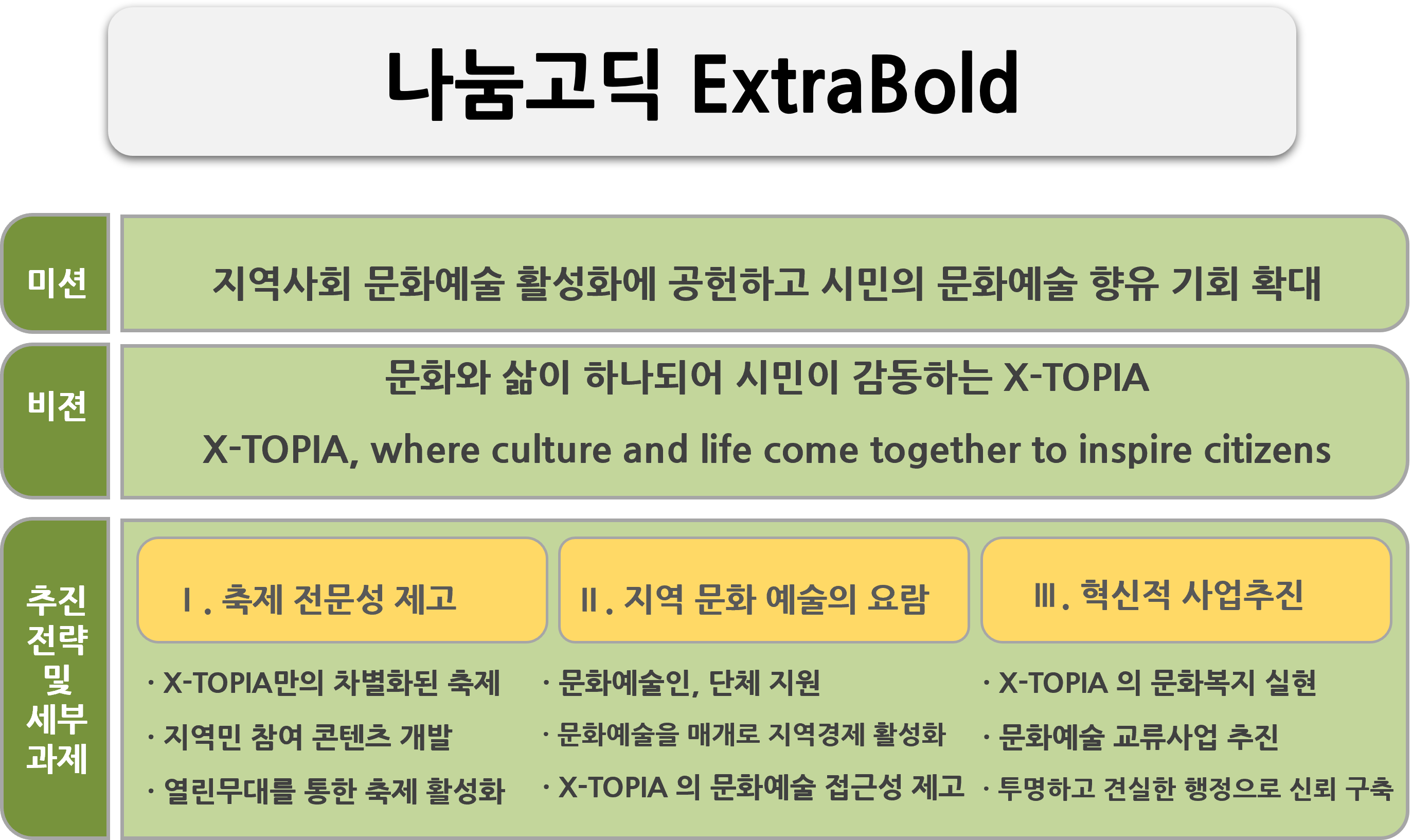 나눔고딕 ExtraBold, 강원특별자치도체 SemiBold, 강원특별자치도체 OTF SemiBold 로 각각 작성한 PPT를 보시면 확연히 구분되는 것을 아실 수 있어요.